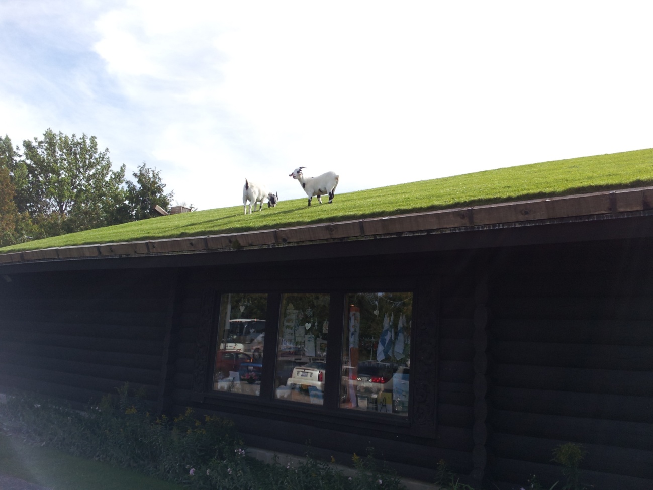 お昼はスウェーデン料理店へ。屋根の上にヤギがいるのが名物の店だそうで、半信半疑ながら屋根を見上げると・・・