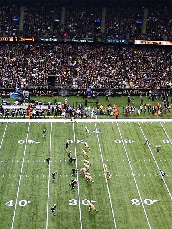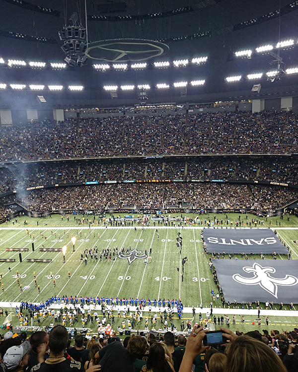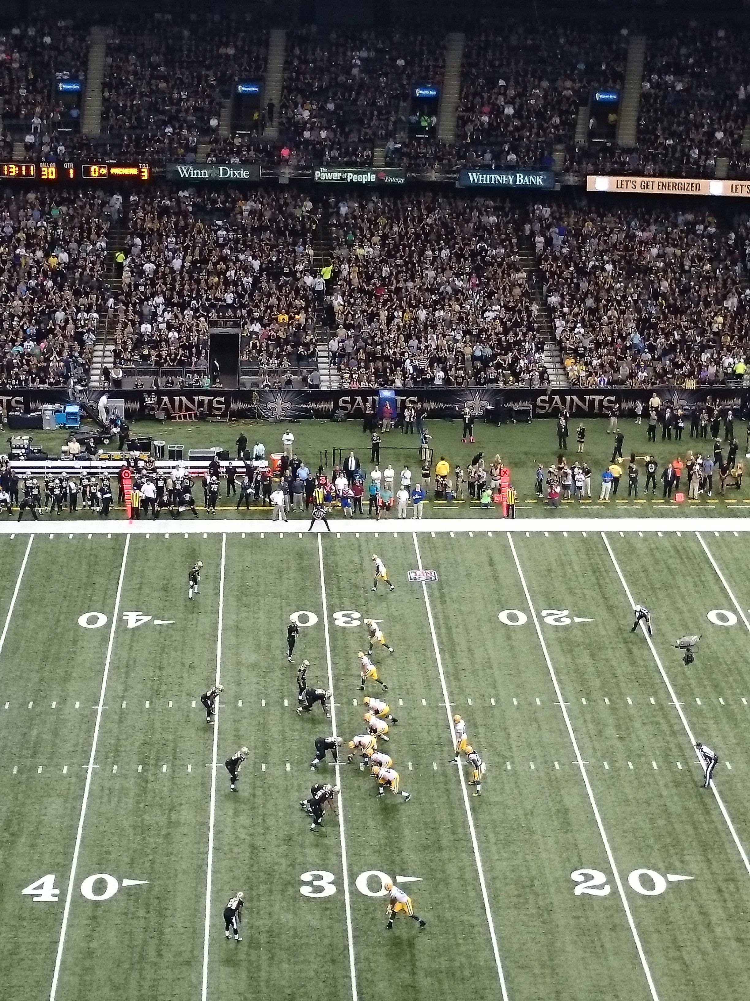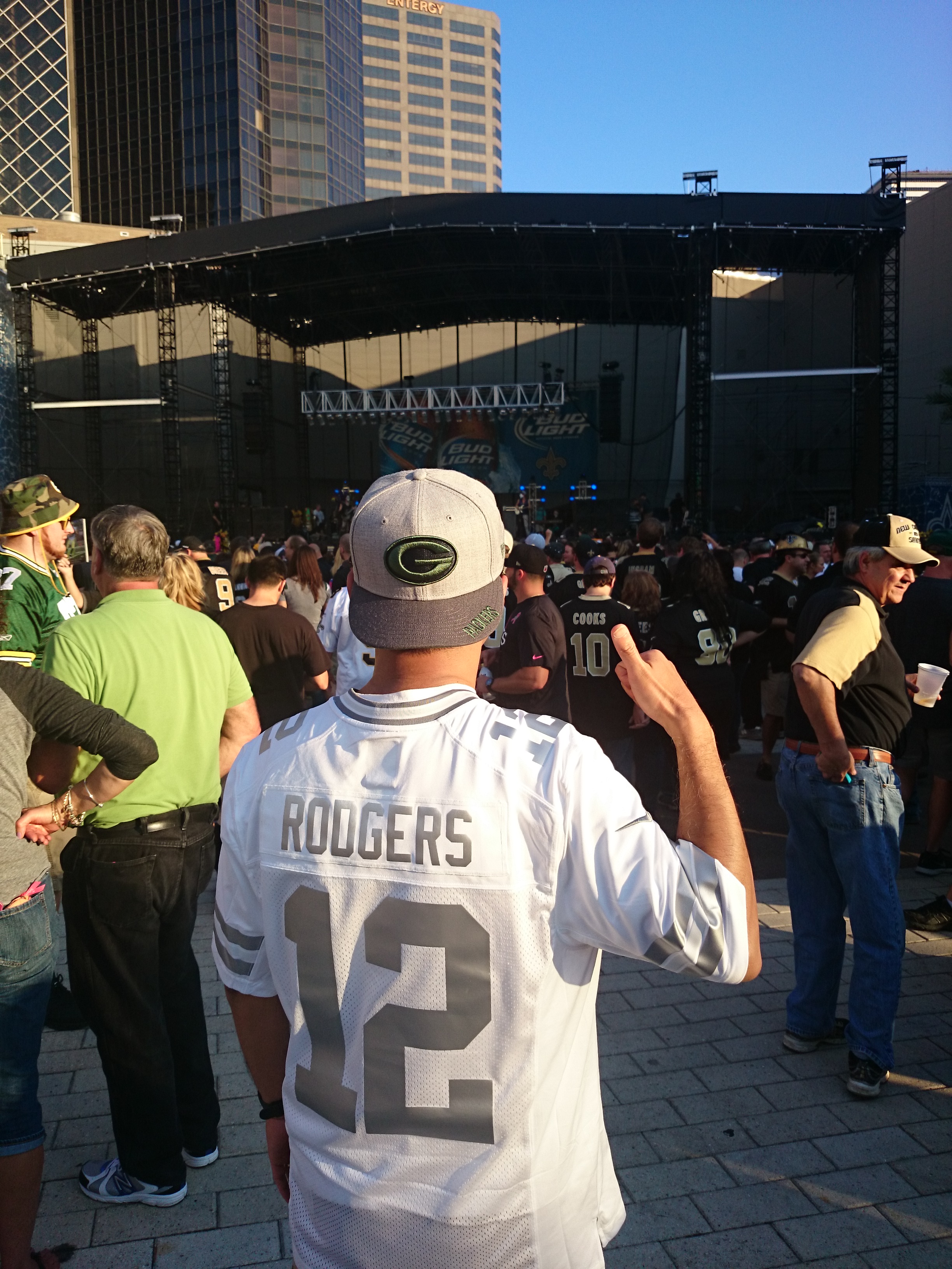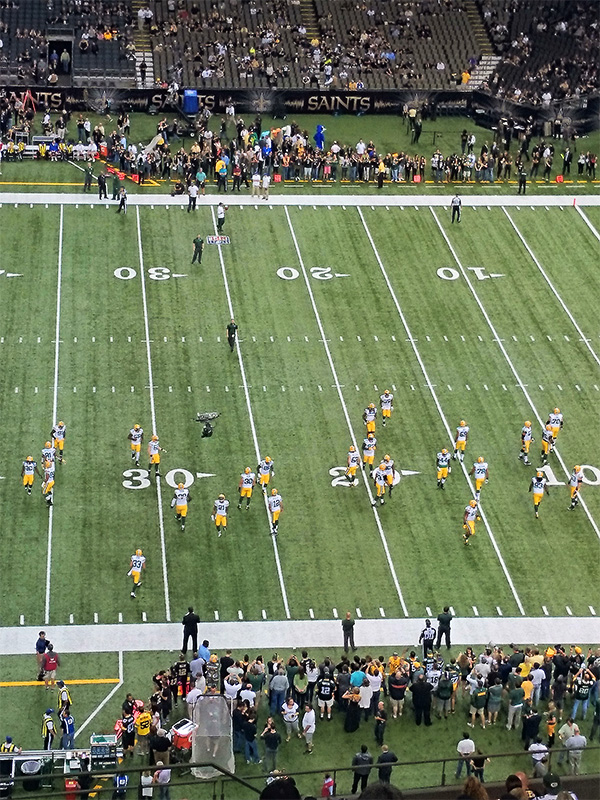 しかし、やはりここはニューオーリンズ。セインツが出てくると、もう何も聞こえなくなる。パッカーズ・ファンは全体の10%くらいと言ったところか。