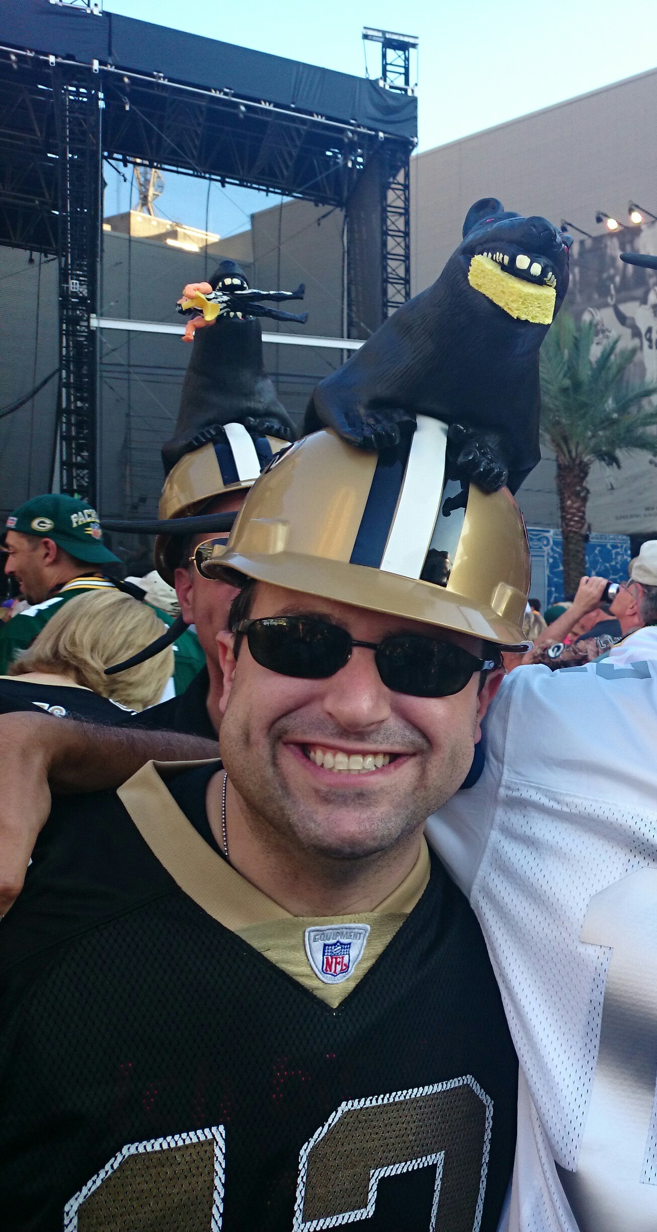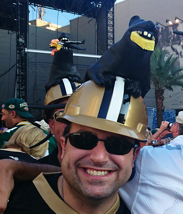 しかし、ここはセインツの地元。見ると、こんなヘルメットをかぶった一団が。