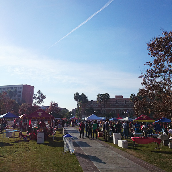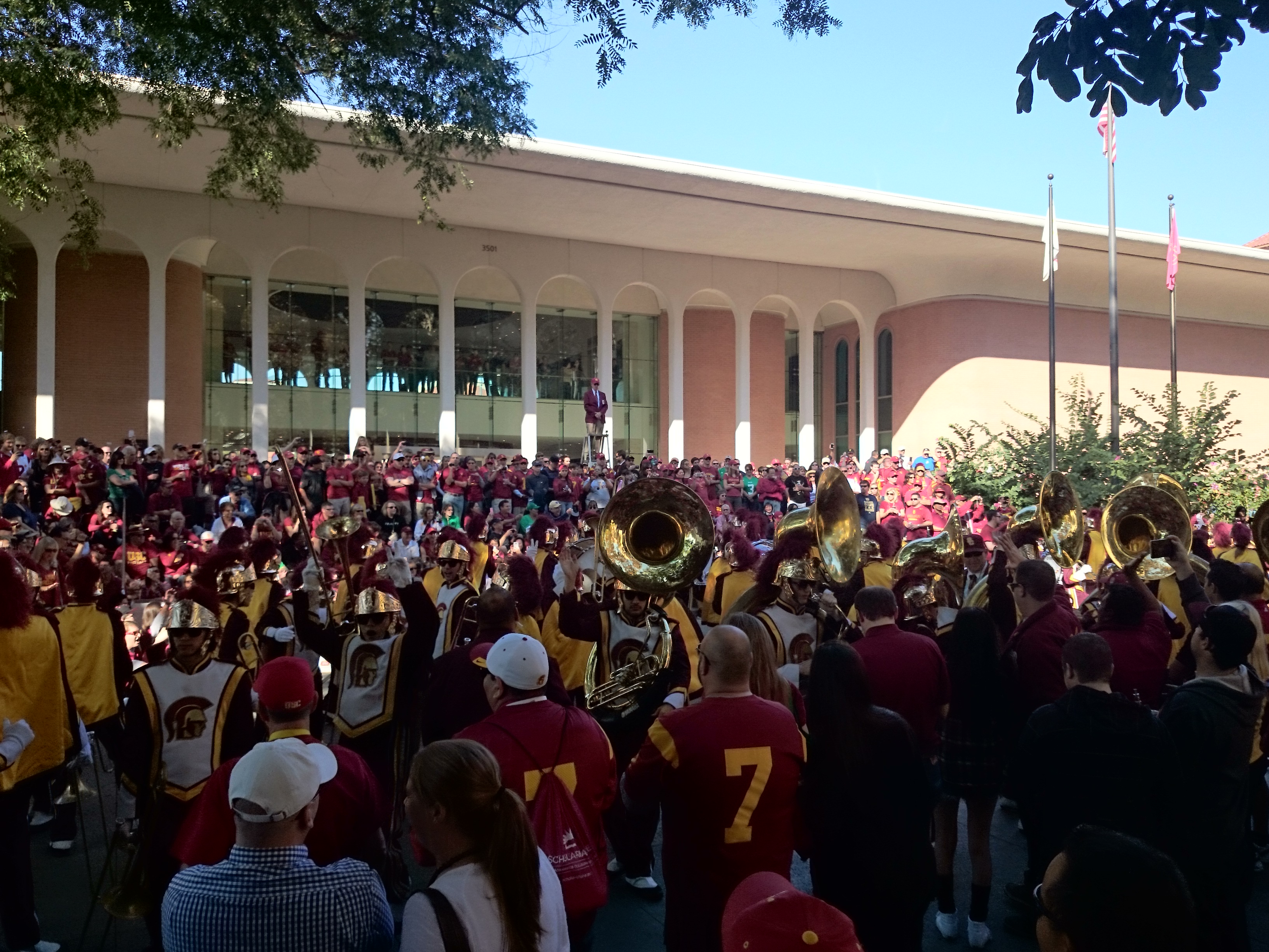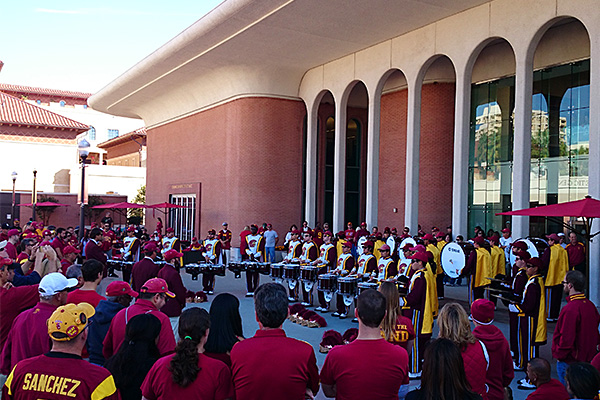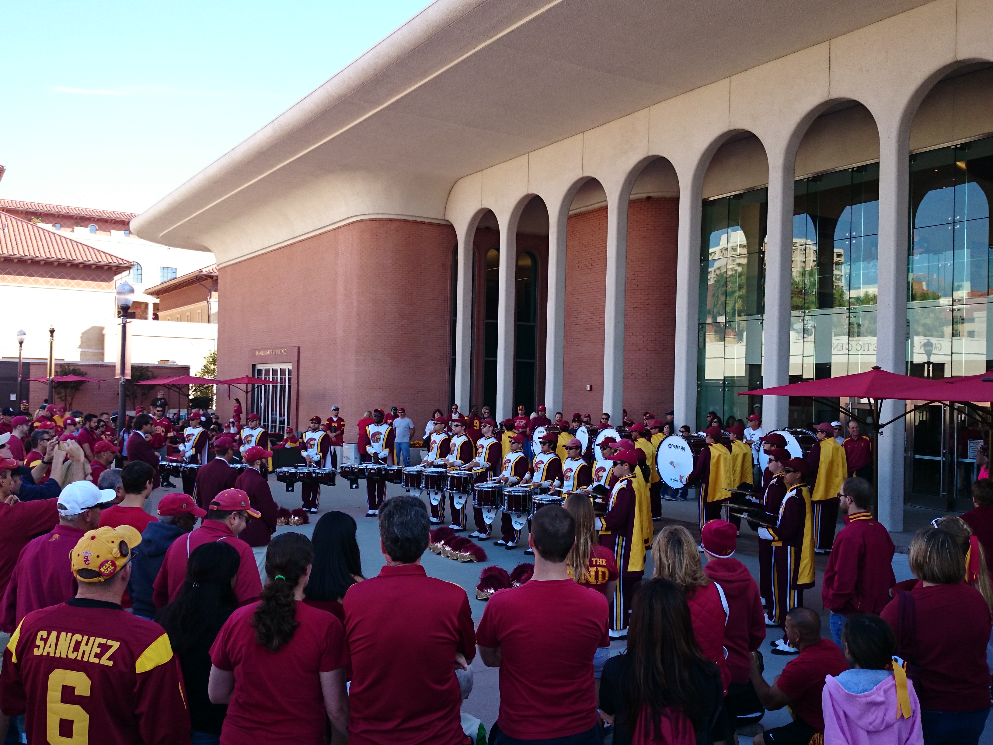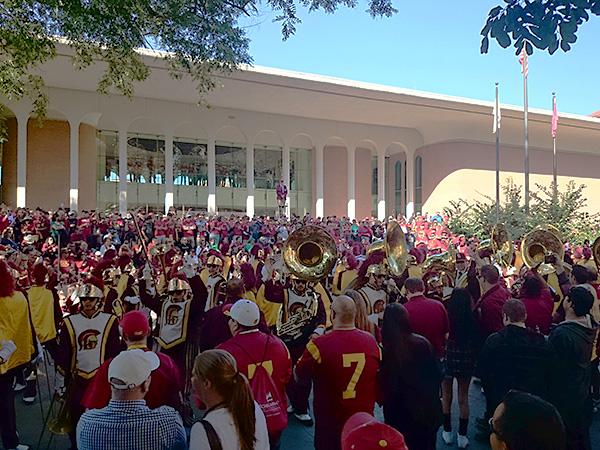 ゲーム前にはマーチングバンドがキャンパス内でUSCの応援歌を演奏して、皆でそれに合わせて掛け声をあげたり、歌ったり。否が応でも盛り上がる!