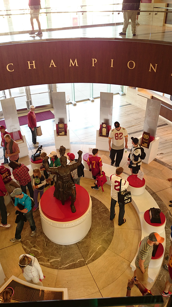 そして、フットボール・ファンなら素通りできないのが、All-Americanに選ばれた選手の楯がずらっと並ぶ一角。その後NFLで活躍した、そして今も活躍している錚々たる顔ぶれが。