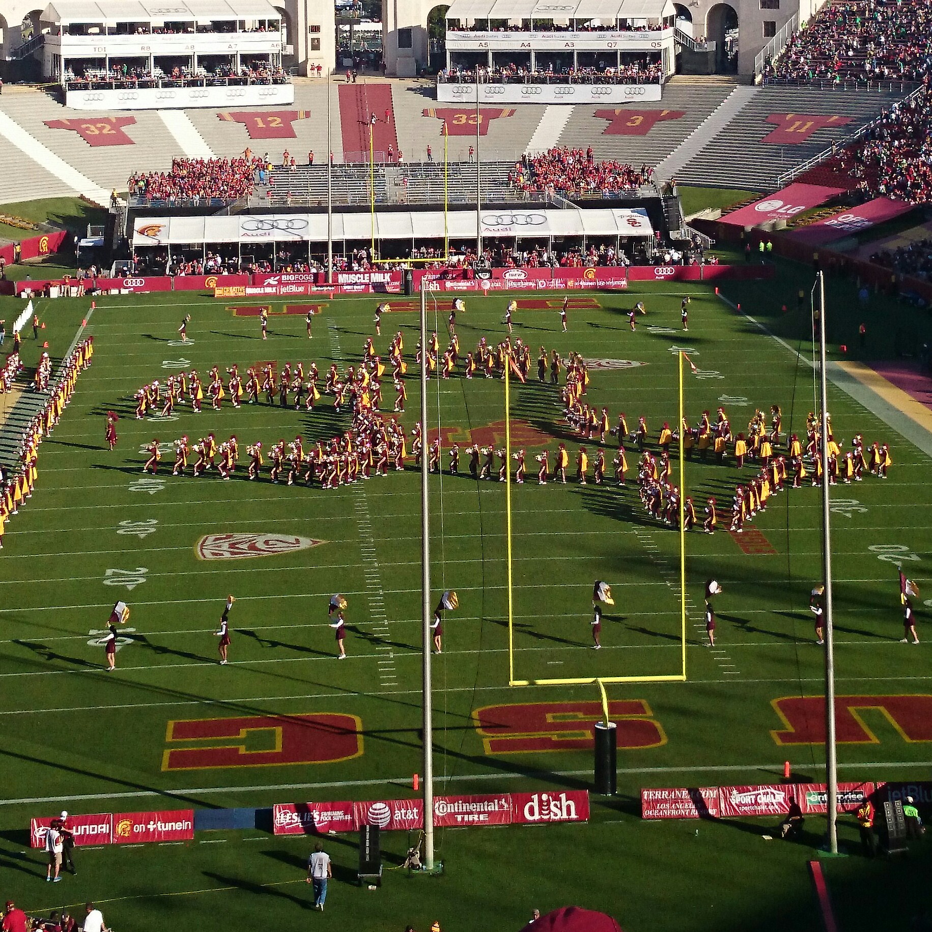 USCのマーチングバンドの実力は折り紙つきで、ハーフタイムのパフォーマンスもなかなかの見ごたえ。