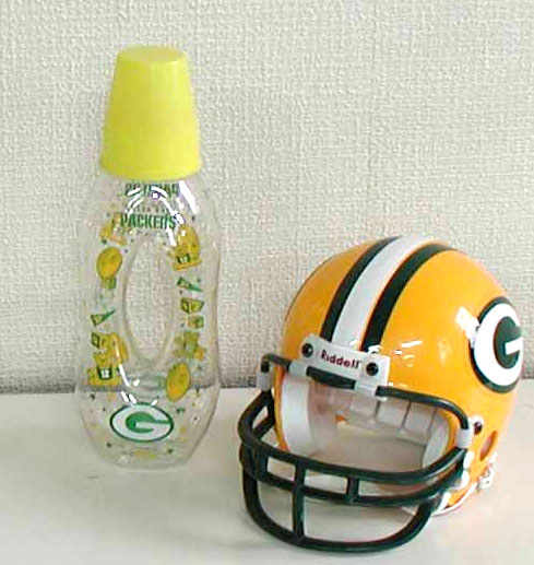 勿論、NFLのことは全くわからない。「あのー、ヘルメットに星んマークのついたチームがあるでしょう、あのチームがなかなかええんでないですか」 「サンフランには何か強いチームがあったような記憶が・・」なんて事を言って私をくさらせるのですが、それでも先のアメリカ旅行では、どこで見つけて来たのか、Packersのウイスキーグラスと哺乳瓶(何ちゅう取り合わせや)を買って来てくれる心優しき人なのであります。