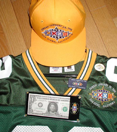 でも、入り口のまだその手前で、もうつまずいてしまった。だって、角を曲がったところの屋台でPackersのミニヘル、スーパーボウル記念のホワイトヘル、記念ワッペン、記念・・・要するにPacersグッズ、記念グッズが所せましと並べてあるんです。もしも、いっかな動こうとしない私にブーたれたMさんが袖を引かなかったら私はいつまでそこにいたかわかったもんじゃありません。会場に入る前にもう荷物がいっぱいになっちゃいました。