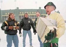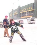 やっと12時近くになりました。エクスペリエンスを出てスタジアムに逆戻り。試合開始3時間以上前だというのに周囲は人、人、人です。勿論、パッカーズもブロンコスも一杯。時々、ほんのまれに何を間違えたか、カウボーイズやヴァイキングスもやってきますが、無論、小さくなっております。ま、運命共同体だ、仲良くしてやろう。『しっかりやれよ』なんて王者の余裕であります。お決まりのセレモニー、何ちゃらパーティもそこかしこでやってます。