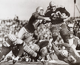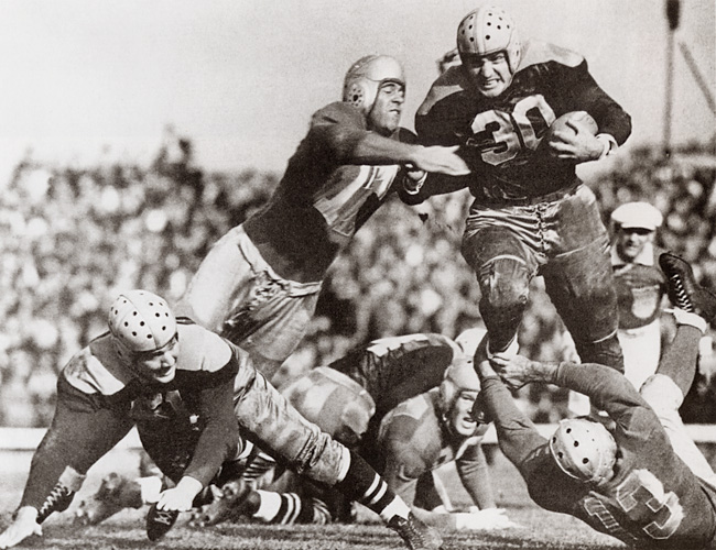 1929年から1931年にかけて三連覇を達成したパッカーズ。さらに、後の殿堂入り選手が2人加わりました。1930年のQBアーニー・ハーバーと1932年のFBクラーク・ヒンクルです。QBハーバーは地元グリーンベイの出身で、NFLで最初の、素晴らしい長距離パサーと言われています。FBヒンクルは強烈なブロッカーであり、優れたランナーでもありました。彼の功績を讃えて、練習フィールドのひとつが"Clarke Hinkle Field"と名付けられています。