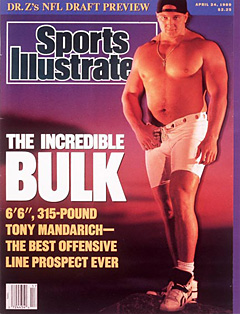 こうして大エースWRの獲得に成功した翌年、1989年のパッカーズはドラフト1巡2位でミシガン州立大のOTトニー・マンダリッチ Tony Mandarichを指名。NFLでの成功確実ともてはやされ、QBトロイ・エイクマンのどちらが1位になるかと議論されたほどのスーパースターでしたが、あの素晴らしい体を作り上げていたのは遺伝子でも努力でもなく、ステロイドの力でした。